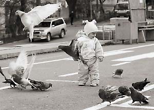 Наглое птичье просящее стадо