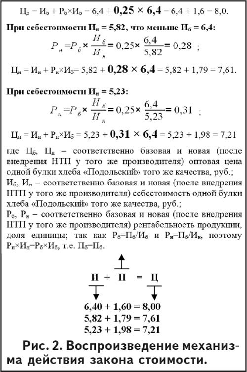 Однако автор этой статьи убежден, что так дела не исправить. Жданов В.Г., другие оппоненты курса либеральных реформ забыли основной объективный закон науки управления – «Закон обеспечения общей заинтересованности» и математическое проявление объективно действующего закона стоимости, открытого Карлом Марксом. Речь идет, в первую очередь, о математическом алгоритме устойчивого согласования интересов покупателя (потребителя) и продавца (производителя), которые являются основными участниками рынка. Оба объективных закона в условиях повышения производительности труда математически проявляются следующим образом: цена товара того же качества снижается (это выгодно покупателю) так, что величина прибыли, заключенной в сниженной цене, одновременно увеличивается (это выгодно производителю). В результате не будет инфляции, так как коэффициент роста товарной массы в натуральном выражении будет устойчиво превышать коэффициент роста денежной массы. Основным же фактором снижения себестоимости будет научно-технический прогресс, или модернизация российских монополий.