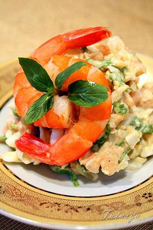 60 г лука-батуна, столько же моркови, майонез, грецкие орехи. Листья батуна мелко посечь и перемешать с натертой свежей или вареной морковью, добавить измельченные грецкие орехи и смешать с майонезом.