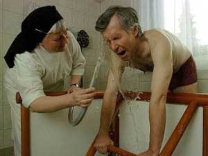 Монахини ордена цистерцианцев предлагают клиентам созданного ими салона комплекс из трех различных процедур: спа-массажа, душа на холодной минеральной воде, а также занятия гимнастикой под руководством специалиста по цигуну.