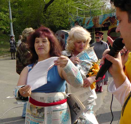 Затем население города стало избирать мэра. Из шести кандидатов после первого тура осталось лишь трое – те, у кого были сильные группы поддержки. Во втором туре борьба за кресло мэра Арсвестграда стала особенно напряженной. В конце концов победила Александра Набокова (Дальнереченск) – и силой характера, и горячей поддержкой. Ей вручили сертификат на дверь (вероятно, от мэрии Арсвестграда), предоставленную магазином «Уют», тоже спонсора нашего праздника. Другие участники конкурса были поощрены футболками, а наиболее близким к победе досталось и шампанское.