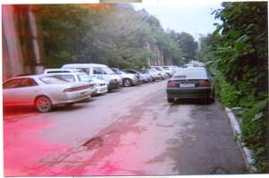 Машины практически вплотную друг к другу стоят по обе стороны двора: один ряд вдоль подпорной стены напротив фасада дома, упираясь в миниатюрную детскую площадку с песочницей, а второй – вдоль клумб, когда-то бывших украшением двора. Помимо этого, между рядами припаркованных автомобилей в обе стороны снует транзитный транспорт, включая устрашающие ревущие мотоциклы и тяжеловесные грузовики. Здравомыслящему человеку нет необходимости объяснять последствия этой вакханалии. От этого круглосуточного автопарка ежедневно раздается рев моторов, громкое хлопанье дверцами и режущий слух визг сигнализации.