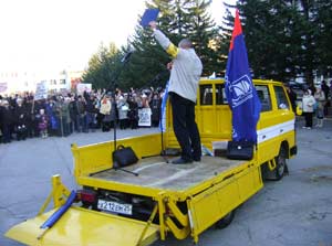 28 октября около 17:00 на центральной площади Дальнегорска начали собираться его жители, в основном работники «Бора» и «Дальполиметалла». Повод был очень серьезный – находящаяся в Москве дирекция Русской горно-рудной компании РГРК (а все горняцкие комбинаты Приморья входят в этот крупный холдинг) фактически перестала выплачивать работникам «Бора» зарплату и вносить в районный бюджет обязательные платежи.