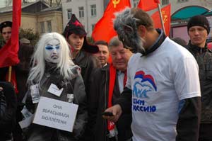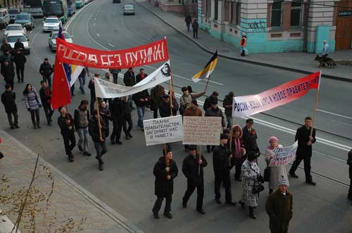 Колонна трудящихся, как и заведено десятилетиями, прошла праздничным маршем по Светланской. Песни – революционные, бодрящие и зовущие. Кумач, как и положено, – красный. Тигр же на знамени символизирует уже не столько Приморский край, сколько самого себя – ТИГРа, т.е. нарождающееся гражданское общество.
