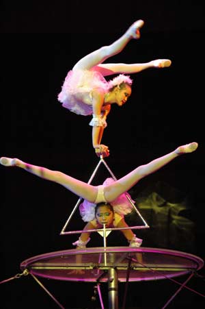 В составе труппы 22 артиста. Среди них есть совсем маленькие – девочки 11 лет. Две из них представили уникальный номер «Лебеди». Несмотря на столь юный возраст, девочки сумели удивить публику гибкостью, ловкостью, смелостью – ведь свои акробатические способности они демонстрировали на высоте. «Девочки-каучук», как их называют – серебряные призеры Международного детского фестиваля в Монте-Карло, обладатели Гран-при Фестиваля циркового искусства в г. Улан-Удэ.