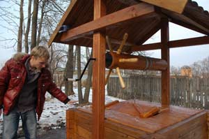 Что, казалось бы, лучше да проще? Деревенский колодец: вода чистая, родниковая, ни хлора, ни грязи. Только время становится врагом да людская бесхозяйственность: сруб рушится, дерево сгнивает, металлическая проволока рвётся. Чистить колодцы необходимо, срубы восстанавливать, рукоятки ставить… Но – кому и на какие средства? Да ещё такие красивые, как этот?