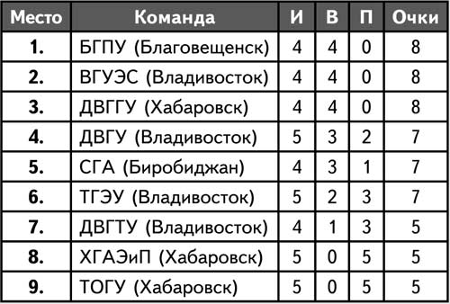 Без поражений идут три команды, одна из них – ВГУЭС (тренер мастер спорта Игорь Макаров). Между собой они еще не встречались.