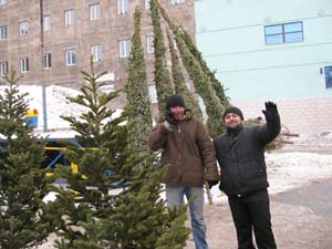 На площади у Первореченского рынка их цены варьируют от полутора до пятнадцати тысяч рублей. Продавец Фарид на мой вопрос, сколько он заплатил за место, чтобы здесь торговать, ответил, что за место платил хозяин, а сам он лишь рубил ёлки и торгует ими за зарплату 20 тысяч рублей в месяц.