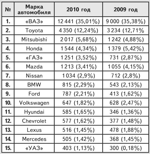 За девять месяцев 2010 года в России было угнано 35 533 транспортных средства, что на две тысячи машин больше, чем за весь 2009 год. Самой популярной маркой у угонщиков, как и прежде, является Lada. Далее по списку следуют сразу три японских бренда – Toyota, Mitsubishi и Honda.
