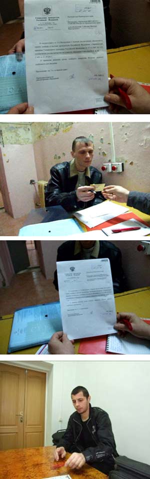 Синькинеев И.А. распорядился о приводе Соболева В.В. в следственный кабинет и Шевцова С.С. в медицинскую часть для беседы с членами ОНК и работниками медицинской части, а так же выяснил, что подследственный Насырова Мурза Самед-аглы по состоянию на 06.05.2011 г. не числится в ФКУ Следственный изолятор № 1.