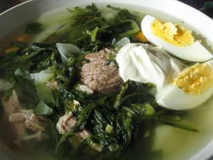 На 500 г щавеля – 2 огурца, 50 г зеленого лука, 2 яйца, сметана, соль, сахар, уксус, укроп – по вкусу. Мелко нарежьте щавель, залейте горячим бульоном и варите минут 5-7. Разотрите с солью мелко нарезанный лук, нарежьте огурцы, белок крутых яиц, а желток мелко разотрите. Положите всё это в охлаждённый отвар и перемешайте. Перед подачей на стол добавьте соль, сахар, сметану, укроп.