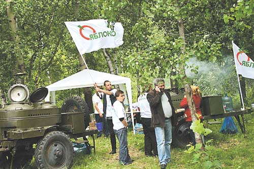 Бытовые проблемы – это в том числе и еда. Полевую кухню предоставила партия «Яблоко». Вероятно, они рассчитывали на 500 человек ежедневно (хотя организаторы до начала предполагали 2-3 тысячи – возможно, в целях рекламы, и сами в это не верили – и удивились, когда это сбылось), так что к окончанию каши стало не хватать, а чай периодически заканчивался. Впрочем, о голоде говорить не пристало: кто ж едет в лес без еды в рюкзачке? Отдельные компании, которые приехали не на один день, налегке, а с палатками, на все дни, жгли костры и плов себе варили, и шашлычки жарили.