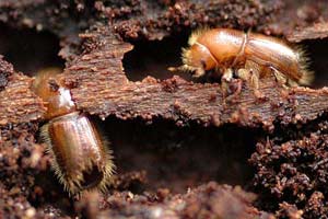 А короеды – это жуки, которые для кладки яиц делают ходы под корой деревьев. Их безногие личинки обычно живут под корой деревьев, прогрызая здесь ходы. Реже они проникают в толщу древесины. Борьба с ними достаточно трудна. Гораздо легче предусмотреть появление короедов заранее. При строительстве дома из бревен или полубруса тщательно очищайте строительный материал от коры, обрабатывайте его различными растворами, отпугивающими жука, например, отработанным машинным маслом.