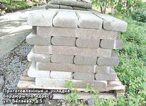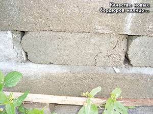 В нашем микрорайоне, на б. Тихой начали менять бордюры. Где вручную с помощью кувалды, где с помощью небольшого экскаватора старые, но ещё достаточно крепкие, добротно сделанные по всем ГОСТам железобетонные бордюрные камни выкорчевали и увезли. На их место завезли и стали устанавливать новые бордюры. Материал, из которого они сделаны, трудно определить. Но то, что он крошится руками, а от лёгкого удара камнем откалываются куски (пришлось провести эксперимент) – это факт!
