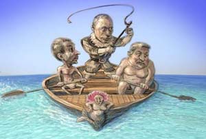 Да и его соратники по партии со своих галер тоже сходить не собираются. Госдума бастует, «судьбоносные» решения не принимает. Одни в чёс по городам и весям направились, электорат обрабатывать. Другие тёплые места приискивают. Кнопки-то нажимать и некому.