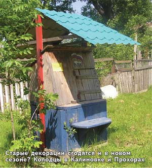 Да и не колодцы это вовсе (потому как воды в них как не было, так и нет), а декорации. На их фоне местные телевизионщики и фотокорреспонденты Александра Михайловича со свитой в разных ракурсах снимали и потом по «Орбите» показывали. Так и остались они, огромными гвоздями забитые (а ну как свалится какой неосторожный любопытный малыш?). Зато эмблема «ЕР» издалека видна!