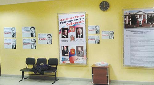 А как насчет агитации? «Зам-секретаря регионального политсовета партии «Единая Россия» Алексей Додатко, в свою очередь, заявил, что плакаты в гимназии висят законно: «Юристы подтверждают, что при наличии согласия руководителя учреждения или организации там может быть размещена любая политическая реклама». Понятно? Не на уроке же, не в классе. Значит – можно. Директор разрешила. То есть всем нельзя (в предвыборный период, кстати, проводить встречи кандидатов в депутаты в школах запрещает закон), а некоторым можно.