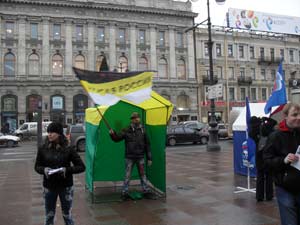 У метро «Гостиный двор» с 14:00 до 15:00 cтояла палатка общественной организации «Другая Россия» с развернутым флагом. Раздавались листовки с призывами не ходить на выборы, а прийти 4 декабря к метро «Гостиный двор» на народный сход. Представители СМИ фиксировали мероприятие.