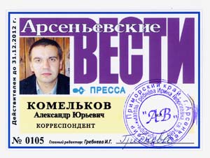 5 декабря корреспондента газеты «Арсеньевские вести» Александра Комелькова полиция арестовала за то, что он снимал митинг оппозиции в Санкт-Петербурге. Удостоверение корреспондента «АВ» на полицейских не возымело никакого действия. «Это фальшивка», – заявили они.
