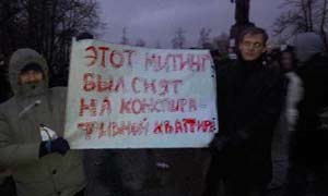 Закончился митинг, как полагается, принятием резолюции (см. стр. 4). На выполнение всех пунктов резолюции митингующие дали власти две недели. Следующий митинг, соответственно, запланирован на 24 декабря.