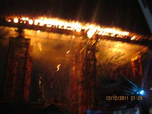 Вечером? 12 декабря, около 20.00 произошло возгорание деревянной опалубки на эстакаде строящегося моста через бухту Золотой Рог. По словам очевидцев, огонь возник в одном из домиков строителей моста и далее перекинулся на деревянные конструкции в основе моста, состоящие из досок и брусьев.