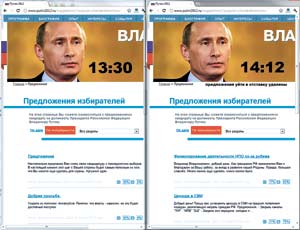 Конечно, конечно, мы знаем, что Путин и так крут, мог бы и без сайта обойтись, тем более что его инструмент – телевидение. Но если бы обошелся – сколько криков было бы со стороны живущих в Интернете! Вот он и поддался. Решил освоить новую площадку. Чем он хуже Медведева? Тем более, что место было зобито пару лет назад. Тогда был зарегистрирован не только домен www.putin2012.ru, но и для Медведева то же самое – на всякий случай. Мало ли что? И вот теперь понадобилось.