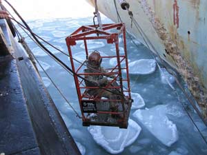 Случаи бывают разные, бывает, что у судна в открытом море ломается двигатель, и оно не может самостоятельно двигаться в порт приписке, и нуждается в буксировке. Бывает, что судно садится на мель, и вызывают спасатель, чтобы снять судно с мели. Тушение пожаров, спасение людей, заделка пробоин, снятие с винтов, сетей, тралов, швартовых канатов со всеми этими аварийными ситуациями, приходится разбираться спасателям, иногда погодные условия делают работу их чрезвычайно опасной и связанной с большим риском для жизни. В состав отряда входит команда водолазов. Подводные работы это - технически сложные операции, и их могут проделать, только профессионально обученные люди. И даже у них получается не все гладко, Евгений рассказал, что был случай, когда водолазам приходилось несколько дней устранять аварию. Оборудование, которое используют водолазы-спасатели проверенное временем и многочисленными спусками, это так называемая трехболтовка, к резиновому костюму крепится металлический шлем и закрепляется тремя болтами. Этот костюм позволяет водолазу провести под водой более 4 часов.