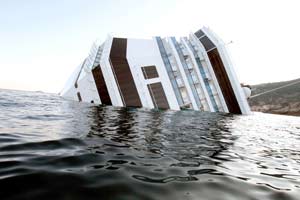 Круизный корабль Costa Concordia длиной 290 метров напоролся на рифы в ночь на 14 января этого года неподалеку от острова Джилио в регионе Тоскана. На борту лайнера находились около 4200 пассажиров и членов экипажа. 17 человек погибли, 15 до сих пор считаются пропавшими без вести. После происшествия компания-владелец судна Costa Cruises уволила капитана Скеттино – единственного подозреваемого по уголовному делу о катастрофе. Компания также предложила компенсации пострадавшим и их семьям в размере 9 тысяч евро, но многие уже заявили, что этого мало, и намерены подавать судебные иски с требованием большей суммы денег. Дело в отношении капитана, задержанного через несколько дней после крушения лайнера, расследует итальянская прокуратура.