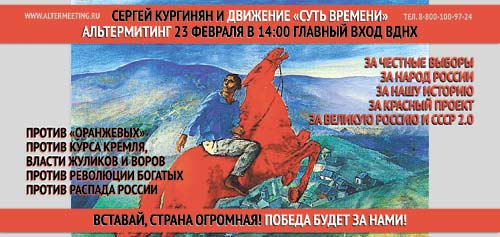 А сейчас группа «Суть времени», если внимательно присмотреться, от Путина отмежевалась. Их интересует исключительно «антиоранжизм», Путин тут ни при чем и даже мешает. Владивосток – город маленький, здесь по разным площадям не очень-то разбежишься, да и запутинцы явно не поняли смысла этого митинга. То есть они по-прежнему воспринимают «антиоранж» и «запутина» в комплексе. А вот в Москве – разбежались. Альтермитинг на 15 тысяч заявлен у входа в ВДНХ, а «запутина» – на Манежной на 200 тысяч. Единственное, что их объединяет и сбивает с толку невнимательных читателей – что в один день они проходят, 23 февраля.