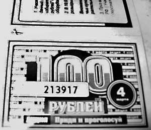 Оксана Михайлова пришла на свой избирательный участок № 419 ровно в восемь утра еще и потому, что ей, как и группе других избирателей, в вечерней школе дали лотерейный билет № 213917 с купоном на 100 рублей и приглашением принять участие в лотерее ОТВ.