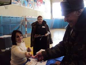 Обретя заветный талон, сфотографировала счастливчиков, которые получили заветный талон от улыбающейся члена участковой избирательной комиссии.