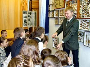 В перерыве между сессиями были подготовлены интересные экскурсии по институтским лабораториям и музеям. Особое внимание у всех вызвала редкая коллекция насекомых лаборатории энтомологии. С каким интересом и удивлением ребята рассматривали бабочек, жуков, прямокрылых и других насекомых. Экскурсовод, Валерий Локтионов рассказывает о насекомых с большим удовольствием.