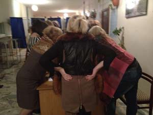 Пожилая женщина лежит на полу. Мужчина средних лет спит у входа, не слыша входящих и не реагируя на камеры и вопросы немногочисленных журналистов. Парень, лет двадцати, смертельно бледный, стоит у стены и говорит, что все обращения не имеют ровно никакого значения, а беспредел терпеть немыслимо» (doctor-liza.livejournal.com).