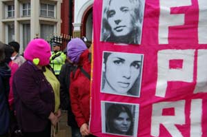 Начавшийся сезон дождливой погоды не смог остановить съехавшихся 23 апреля в лондон из различных колледжей и университетов соединенного королевства студентов, чтобы провести яркую публичную акцию около здания российского посольства, где обычно собираются на свои протестные митинги не согласные с происходящими в рф беззакониями граждане россии. Оказалось, что достаточно легко объяснить английской молодежи то, что происходит сейчас в россии. Многие были очень хорошо осведомлены о ситуации в этой далекой стране и имели полное представление кто такой мистер путин, и каким образом чекисты в рясах, называемые на русском слэнге попами, могут влиять на судебные решения полностью подконтрольных нелегитимным властям судов. Англичане демонстрировали очень хорошее знание истории и говорили, что подобные явления случались и в их стране и в странах европы. Только происходило это в далекие и дремучие средние века, когда инквизиторы, прикрывавшиеся христианскими ценностями, устраивали охоты на ведьм и мучили в застенках ни в чем не виновных женщин, чьи высказывания или просто внешний вид и поведение трактовались тогдашними бишопами как богохульство. Это теперь, через несколько столетий, всем стало понятно, что настоящими богохульниками как раз и были те самые инквизиторы, просто в их руках была неконтролируемая обществом власть, что и позволяло им бесчинствовать и пытать невиновных людей. А в те времена, многие, одураченные лицемерным поповским сословием, люди наивно верили, что во всех бедах виноваты именно ведьмы, и что их казни и пытки в застенках и есть лучший способ избавления от бед. Современная россия, все глубже погружающаяся в дебри феодальных отношений благодаря внедренной бывшими сотрудниками кгб, захватившими власть в стране, системе воровских понятий вместо главенства закона, представляет сейчас , по мнению многих участников акции , именно то самое наглядное пособие, которое очень достоверно могло бы содействовать изучению средневековой истории. Но лучше бы это было в кино, потому что несчастных девушек всем искренне жаль, и то ужасающее своей жестокостью отношение к ним, которое выразили через позорное решение подконтрольного суда российские власти и сотрудники рпц, вызывало у многих откровенное чувство ненависти к тем людям, которые пробрались к власти в далекой россии.