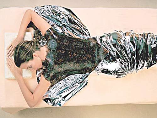 3. Затем нанесите приготовленную смесь толстым или тонким слоем на проблемные зоны – бедра, ягодицы, живот. Оберните обработанные участки полиэтиленовой пленкой, чтобы разогретая кожа лучше впитала, содержащиеся в водорослях и других компонентах - микроэлементы. Пленка будет удерживать тепло и не давать маске засохнуть. Затем завернитесь в одеяло, а если имеется, то в спальный мешок. При некоторых обертываниях рекомендуется двигаться.