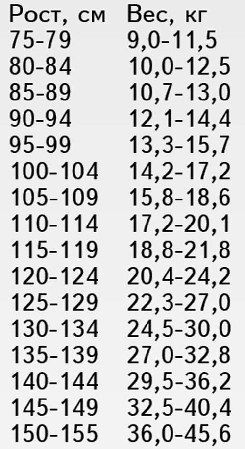 Для диагностирования проблемы у дошкольников и младших школьников пользуются специальными таблицами (см. пример слева). Когда реальный вес ребёнка превосходит норму менее чем на 15%, речь идёт об избыточной массе тела – это ещё не ожирение, но лучше начать принимать меры и не дожидаться ухудшения ситуации. Если вес превышает эталон на 15-30% – наблюдается ожирение первой степени, на 30-50% – второй, на 50-100% – третьей, а если разница в два и более раз – самой критичной, четвёртой.