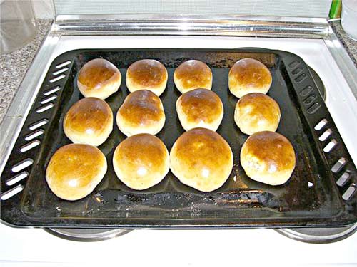 Тесто замесите, поставьте в тепло, прикройте полотенцем – пусть подходит 40 минут. Изюм предварительно промойте, залейте теплой водой – пусть набухает. Подошедшее тесто разделывайте руками, смоченными раст. маслом. Выкладывайте на тесто персик, отжатый изюм и немного сахарного песка и лепите пирожок. Пусть они постоят 15-20 минут, затем смажьте их раст. маслом, посыпьте ванильным сахаром.