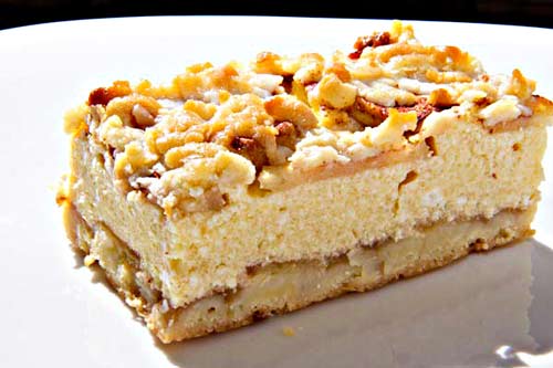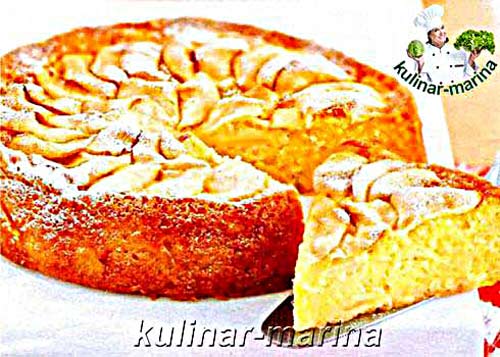 На 600-650 г яблок – сок половины лимона, 2 ст. л. воды, 175 г сахара, 2-3 яйца, 100 г слив. масла, 500 г творога, немножко соли, для смазки формы – слив. масло и, конечно, тесто (можно готовое).