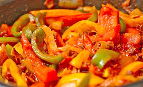 На 3 кг кабачков, нарезанных кубиками, – 15 крупных болгарских перцев соломкой, измельченная головка чеснока, 2?л томатного сока, по 1 стакану 6% уксуса, сахара, 1 ст. растительного масла, 2 ст. л. соли, 1 горький перец (по вкусу). Смешайте и поставьте на огонь на 30 минут после закипания. Виктория Елжова и ее последователи говорят: очень вкусно!