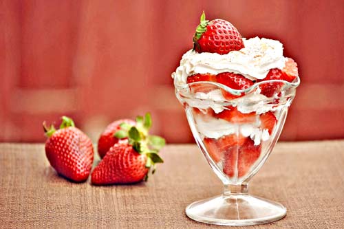На 8 порций – 0,5 л сливок, 0,5 кг клубники, сахар – по вкусу. Клубнику хорошенько промойте, затем протрите с сахаром так, чтобы он полностью растворился, затем, добавьте сливки. Хорошо размешайте и поставьте в холодильник. Вкуснота!