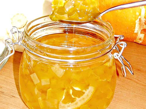 На 1 кг кабачков – 1 кг меда, 400 ?мл воды, 1 лимон.