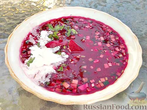 4 свеклы, 500 г свежей капусты, 1?ст. л. лимонного сока, лавровый лист, 0,5 стакана сметаны, 1 ст. л. сока помидоров, 2 л воды.