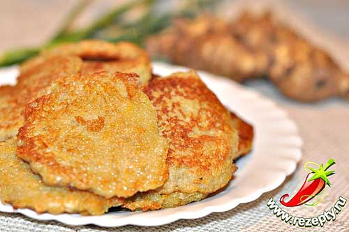8-12 клубней топинамбура, 3 ст.л. слив. масла, сок 1 лимона. 0,5 ст. муки, 1 ст. мясного бульона, 1 ст. сметаны, 0,5 ст. тертого сыра, 0,5 ст. панировочных сухарей, 1-2 ст. л. столового уксуса (6%), соль, зелень петрушки. Клубни топинамбура очистите, вымойте в холодной воде с уксусом. Выньте и обсушите салфеткой, уложите в кастрюлю с растопленным маслом, полейте соком лимона, посолите. Отваренные клубни посыпьте мукой и обжарьте до золотистого цвета, потряхивая сковородку. Полейте бульоном и подержите на сковороде 10 минут. Переложите в сотейник, посыпьте сыром, сбрызните маслом, запекайте до румяной корочки, посыпьте петрушкой и подавайте на стол в этом же сотейнике!