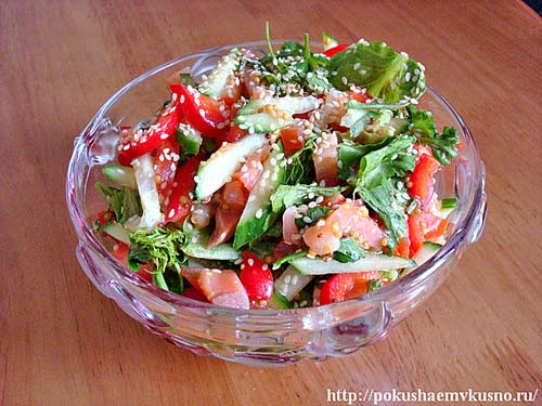 САЛАТ ИЗ КРАСНОЙ РЫБЫ С ОВОЩАМИ
