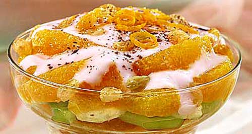 1 небольшой кочан салата, 2 апельсина. Для соуса: 1 стакан йогурта, 1 ч. л. растительного масла, 2 ст. л. яблочного уксуса или лимонного сока, соль, сахар. Разделите кочан, тщательно вымойте и обсушите листья, крупные листья порежьте. Очищенные апельсины разделите на дольки, снимите с них пленку. Апельсиновые дольки и салат положите в салатницу и хорошо перемешайте. В йогурт добавьте масло и уксус, положите сахар, можно немного подсолить. Соус готов, залейте им салат и на стол!