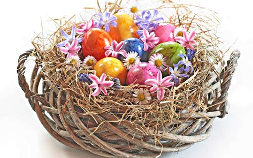 Обычно это делается заранее – в чистый четверг, когда уже вымыт и блестит чистотой весь ваш дом – и окна, и стены, и полы, потолки, шкафы, светильники, посуда, столовые приборы… Все отмыто, надраено, все сияет и сверкает. Вот теперь можно заняться крашением яиц. Крашеные яйца уложите красиво в специальные корзиночки из теста, или на блюдо, или на тарелку. Часто к этому дню выращивают зелень овса, и цветные яички укладывают в корзиночку или тарелочку с зеленой травой (овес, какие-либо листья и т.п.), нарядная скатерть, красивая посуда – все должно быть празднично.