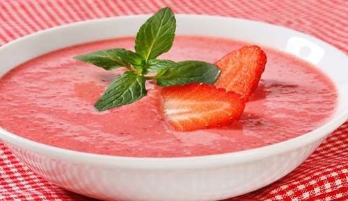 На полстакана измельченных свежих листьев земляники – 1 средний огурец, 2-3 измельченных пера зеленого лука, 2-3 веточки свежей измельченной мяты, 2 ст. л. раст. масла. Соль и перец – по вкусу.