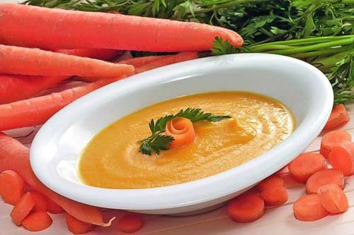 Натрите очищенную морковь, добавьте немного изюма, немного лимонной цедры или цукатов, немножко толченого миндаля, сахара, залейте кипящей водой, варите 8-10 минут. Добавьте горячее молоко, лимонный сок, соль и сахар по вкусу.