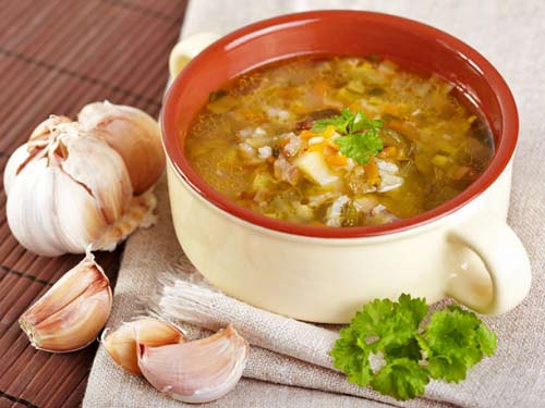 На 3 л воды: 500 г свинины, 0,5 кг картофеля, 1 луковица, 1 морковь, 50 г риса, 2 соленых огурца, соль и специи – по вкусу.