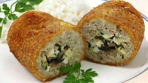 Они в приготовлении немного отличаются от биточков. Филе говядины порежьте ломтиками, шириной два сантиметра. Отбейте молоточком и на каждый кусочек выложите мелко нарезанный лук и гречневую кашу, посыпьте солью и поперчите. Каждый кусочек сверните трубочкой и свяжите нитками. На подсолнечном масле поджарьте трубочки, снимите нитки, сложите в кастрюльку. Добавьте несколько кусочков масла, полейте бульоном и готовьте в духовом шкафу, накрыв крышкой.